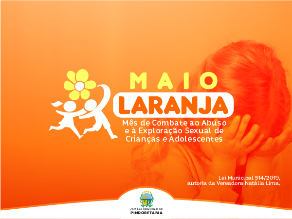 O MAIO LARANJA – Mês de Combate ao Abuso e à Exploração Sexual de Crianças e Adolescentes; Lei Municipal de nº 514/2018 autoria da Vereadora Natália Lima.