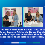 | POSSE DA FUNCIONÁRIA ELENI BARBOSA, CONVOCADA ATRAVÉS DO CONCURSO PUBLICO DA CÂMARA MUNICIAPAL DE PINDORETAMA | ![]() | Ver |