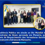 | APROVADO REQUERIMENTO SOBRE A SESSÃO SOLENE P/ O DIA 21 DE MARÇO DE 2023, EM ALUSÃO AO DIA MUNDIAL DA SÍNDROME DE DOWN. | ![]() | Ver |